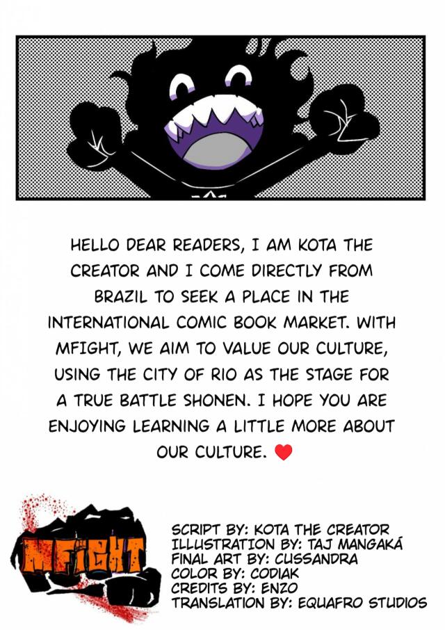 MFIGHT is a manga series, produced among Brazilians, Angolans and Mozambicans. The story tells about a clandestine martial arts tournament, created in order to avoid a war for the throne of Rio De Janeiro, caused by the death of its supreme commander, Colonel Maserati. This event takes place every 4 years and defines the new command of the city, be it the police, politicians, billionaires or the Mafia. Each organization chooses its representative fighter, and this cycle continues until the appearance of an unexpected fighter, Roman Maserati Third.