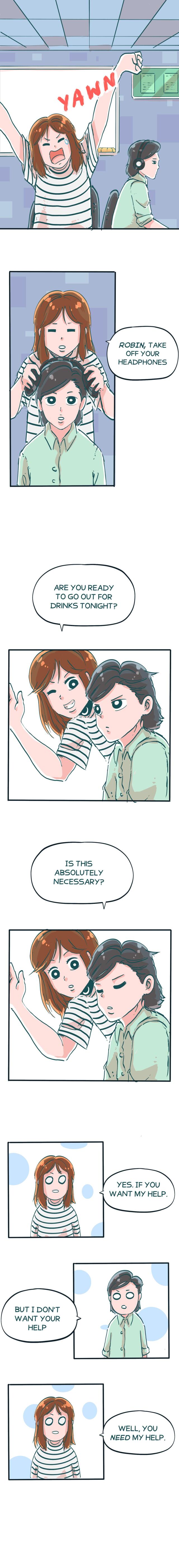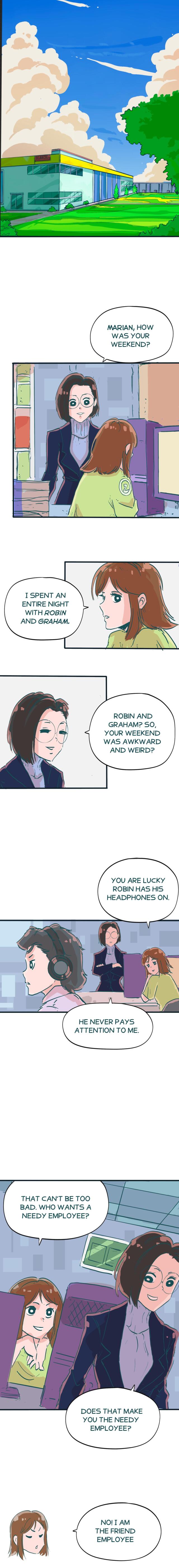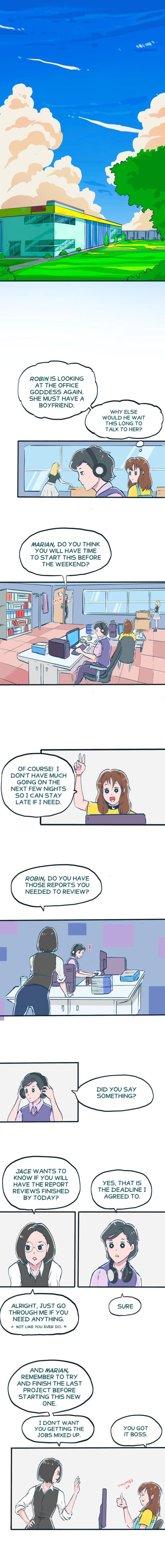 Engineers Marian and Robin share an office at work. They tend to disagree on things. But when Marian finds out about Robin's crush, she is convinced she could help him. He just needs to listen to Marian's advice. Will Robin take off his headphones long enough to get the girl?