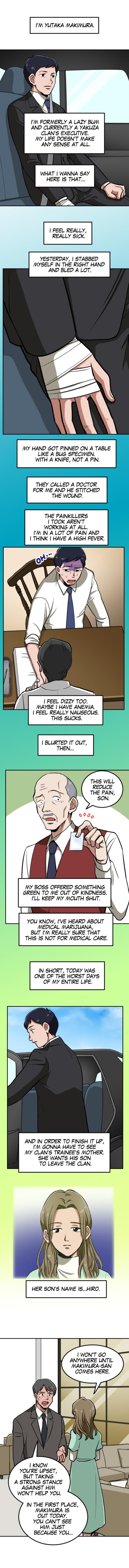 This is a story about a man who was once an unemployed lazy bum living with his parents, but kicked out of his home to find work. He ends up unwittingly getting a job at a front company for the yakuza and begins to climb the ranks in their organization.