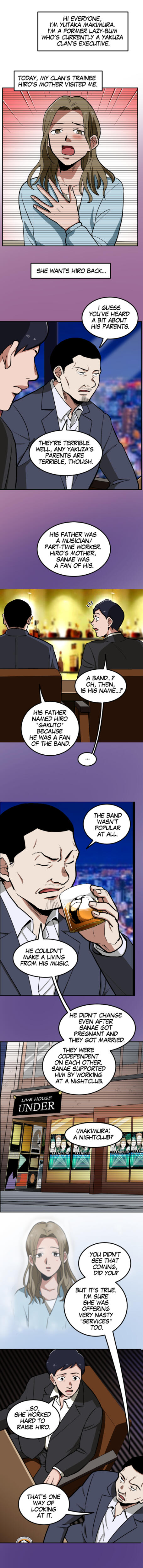 This is a story about a man who was once an unemployed lazy bum living with his parents, but kicked out of his home to find work. He ends up unwittingly getting a job at a front company for the yakuza and begins to climb the ranks in their organization.