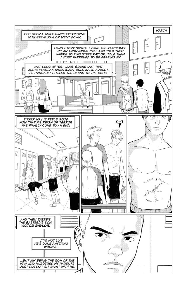 Grayson Bourne, a high school student turned cloaked vigilante (Aegis), brings his parents’ murderer to justice. But his war is only just beginning. The killer’s son, Victor Raylor, overwhelmed by grief and rage, is approached by Gaiyo, a mysterious figure who offers him dangerous magical power and a chance at not only avenging his father’s imprisonment, but also saving his dying mother. Gaiyo’s true motives remain hidden, even from Victor, though one thing is clear: they both want Aegis out of the picture, which is enough to convince the boy to jump on board.